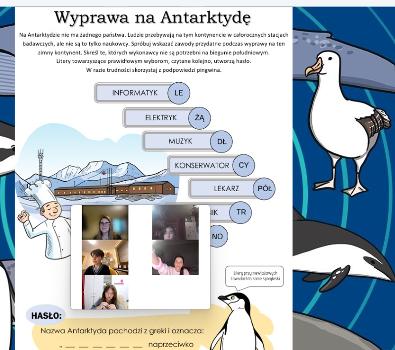 Na ostatniej lekcji w młodszej grupie online wybraliśmy się w niezwykłą podróż na Antarktydę ❄️🌍 Tematem zajęć były zwierzęta antarktyczne, o których dużo rozmawialiśmy i których nazwy ćwiczyliśmy w języku polskim 🐧🐋🐻❄️